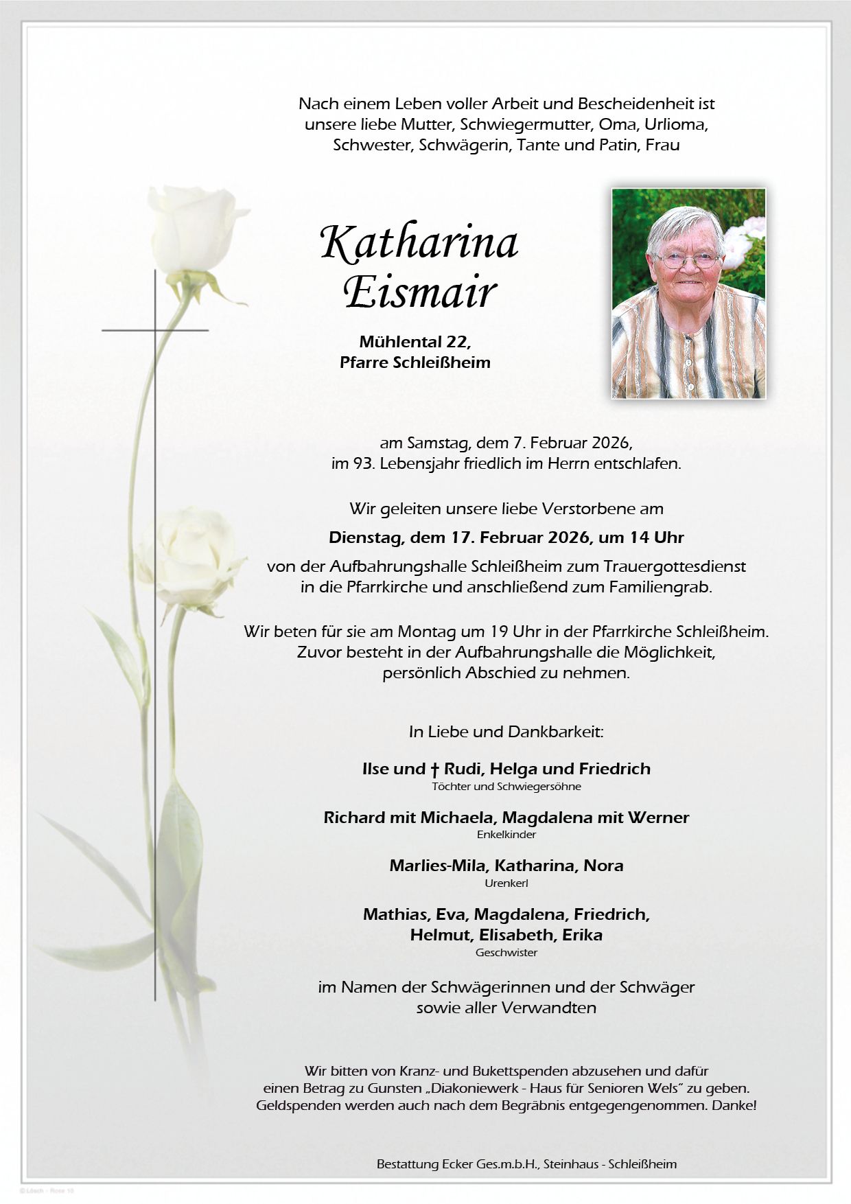 Herzliches Beileid der ganzen Familie. Florina aus Eberstalzell