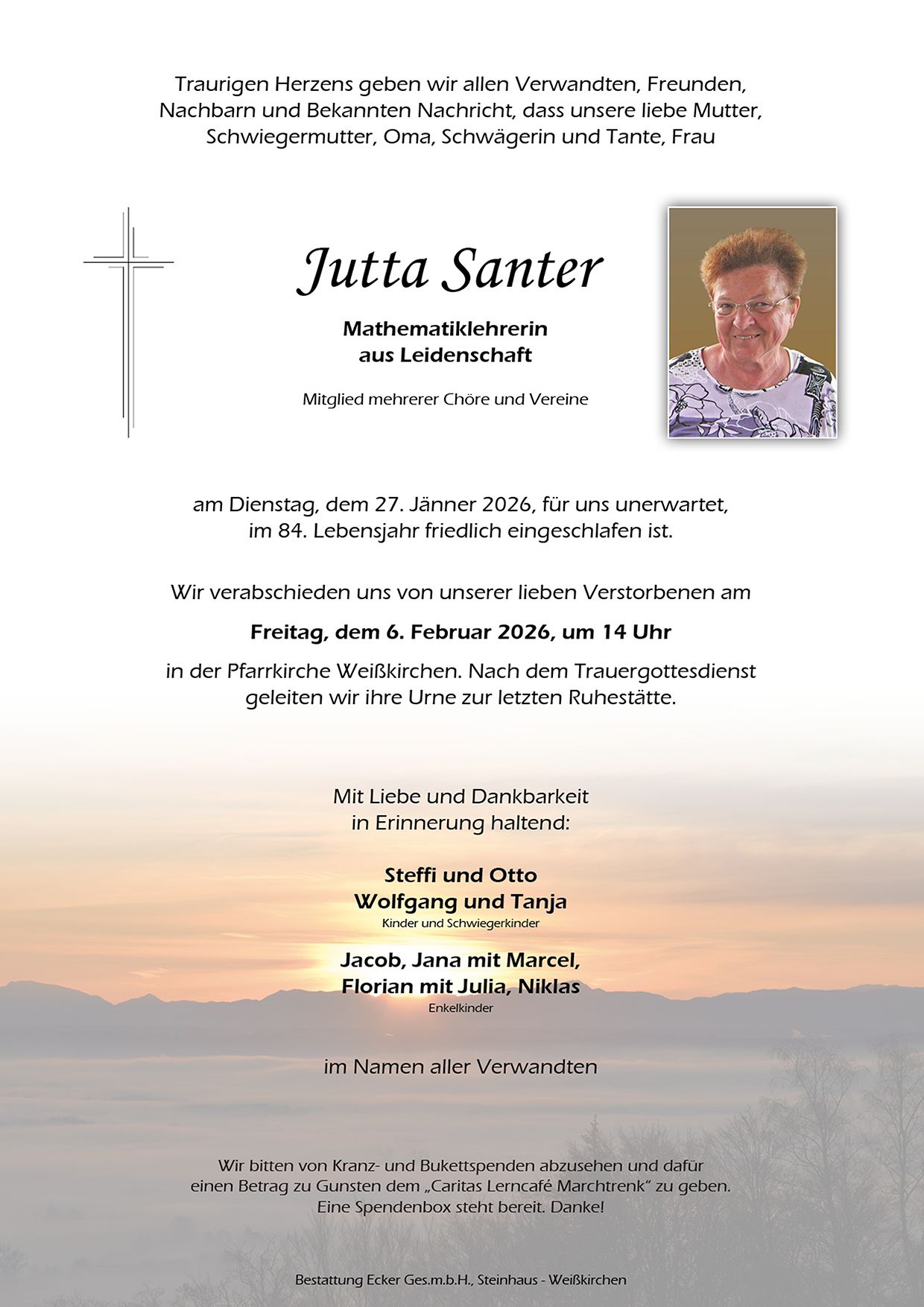 Frau Jutta Santer war eine Lehrerin, die hohe Maßstäbe setzte und damit viel bewirkte.