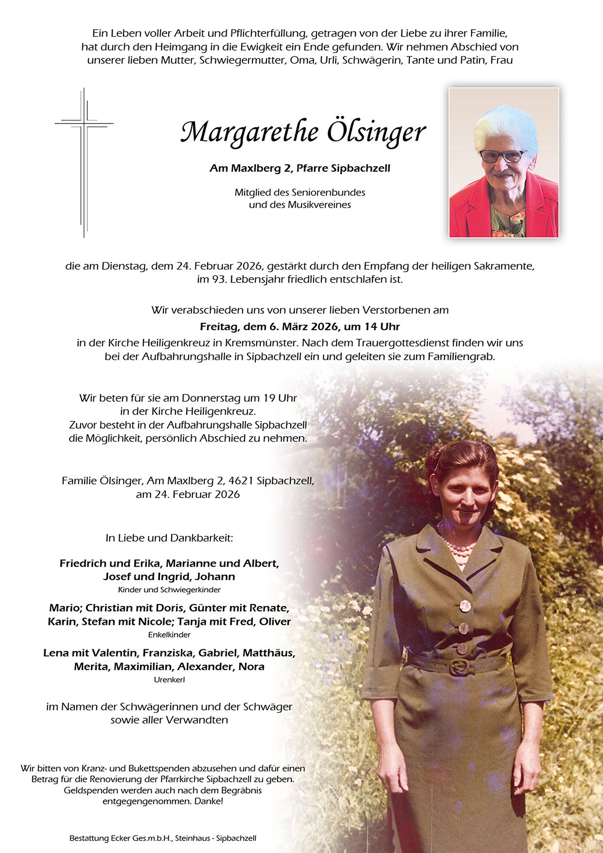 Aufrichtige Anteilnahme an eurem Verlust entbieten der Vorstand und die Mitglieder des Seniorenbundes Sipbachzell
