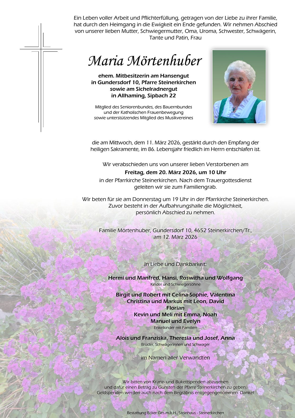 Unser aufrichtiges Beileid zum Tod eurer Mutter. Kfbteam Steinerkirchen