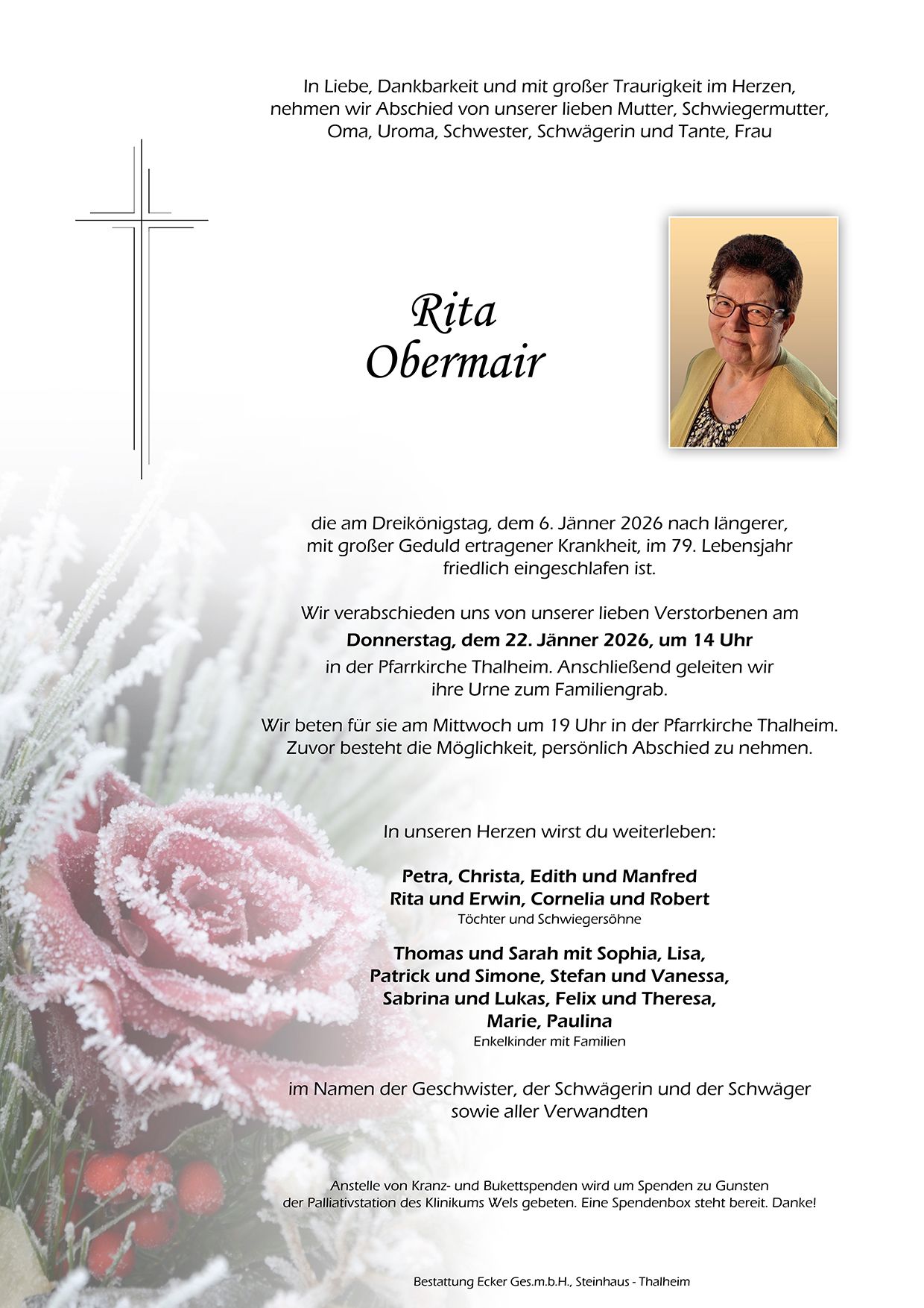 In ganz lieber Erinnerung an dich liebe Rita. Vergelts Gott für das, was du für unsere Familie getan hast. Wir vermissen dich.