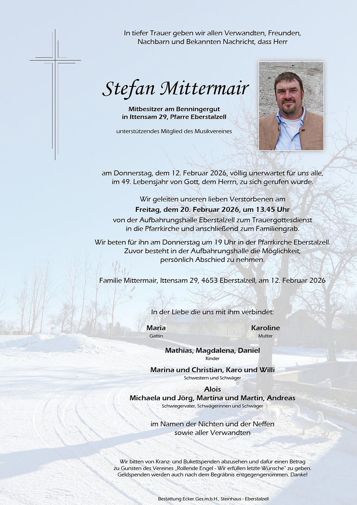 Mit dem Tod eines geliebten Menschen verliert man vieles, niemals aber die gemeinsam verbrachte Zeit. Mit deiner ruhigen und freundlichen Art wirst du uns immer in sehr guter Erinnerung bleiben. Wir haben dich sehr geschätzt,lieber Freund Stefan Ruhe in Frieden. Der ganzen Trauerfamilie unsere herzliche Anteilnahme Ehrenkapellmeister Franz Obernberger mit Familie